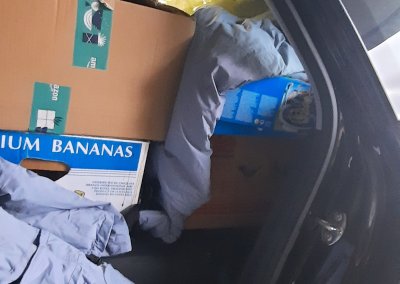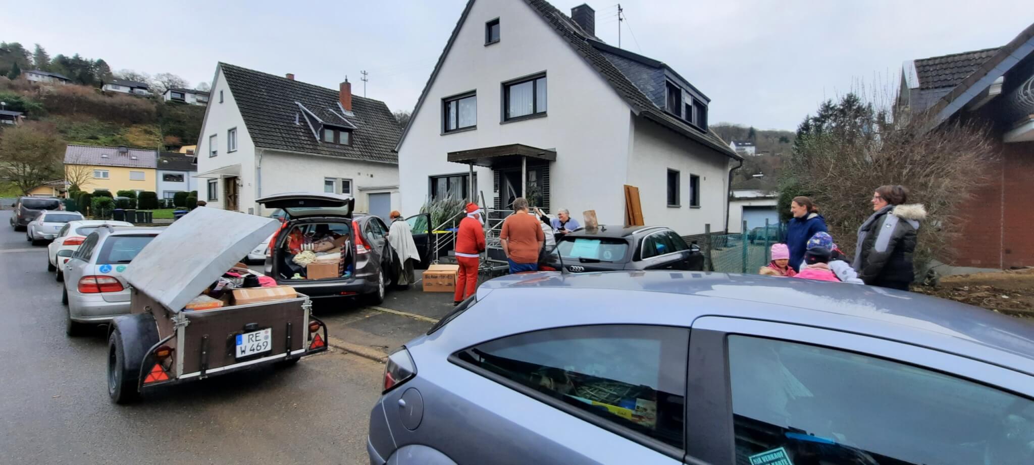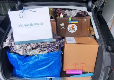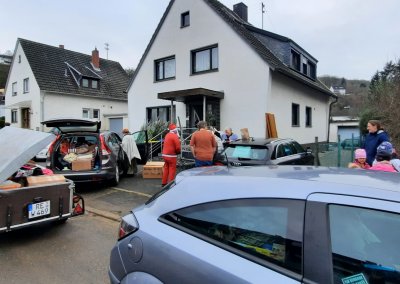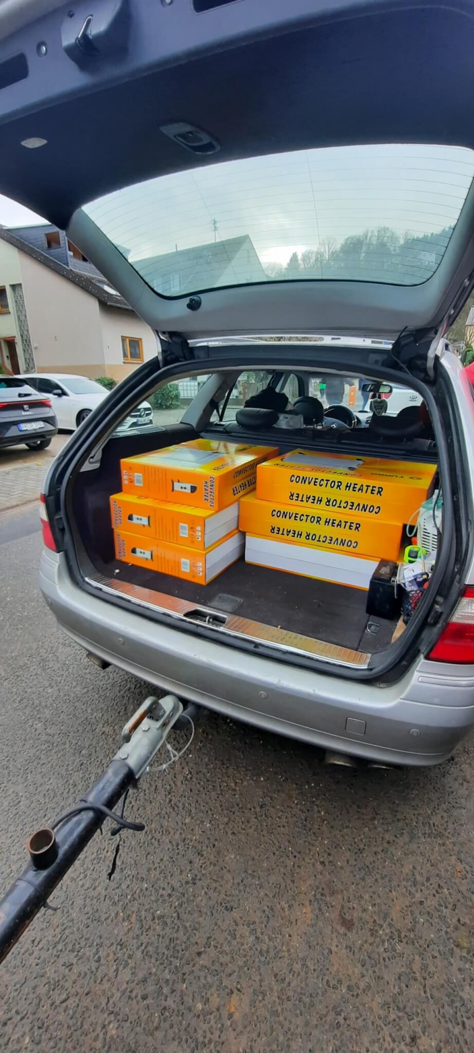 Dann war es endlich soweit. Meine erste Tour ins Ahrtal stand an. Wir trafen uns früh morgens bei Anja und begannen, die Autos zu packen: ein SUV, zwei Kombis und ein Anhänger, alle bis unters Dach gefüllt mit Hilfsgütern. Was für ein Anblick! So viel Unterstützung, so viel Liebe in jedem einzelnen Karton. Tom, Anja und eine Bekannte aus dem Ruhrgebiet starteten gemeinsam.