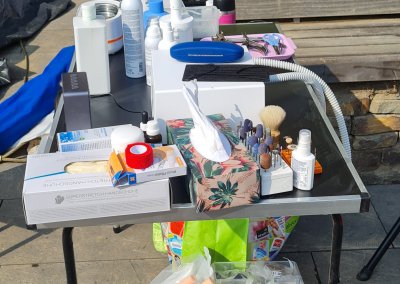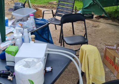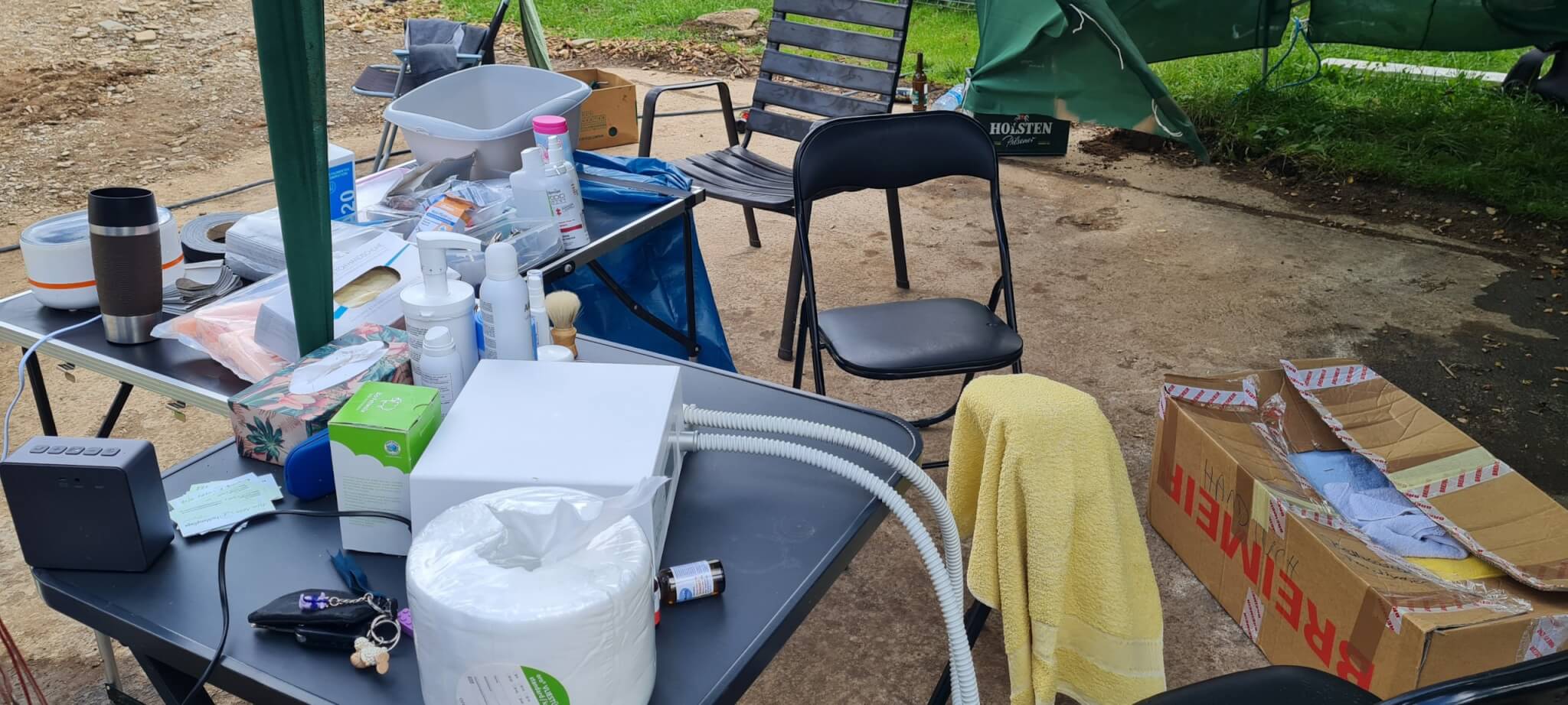 Tag für Tag arbeiteten Helfer bis zur Erschöpfung. Viele hatten seit Tagen keine richtigen Schuhe mehr gewechselt, die Füße wund, aufgerissen, geschwollen. Und genau hier tat sich etwas Besonderes auf. Anja, eigentlich aus einem ganz anderen Lebensbereich kommend, begann, Fußpflege für Helfer anzubieten. Improvisiert, auf einfachen Stühlen, mit kaltem Wasser, Desinfektionsmittel und vor allem: Zeit.