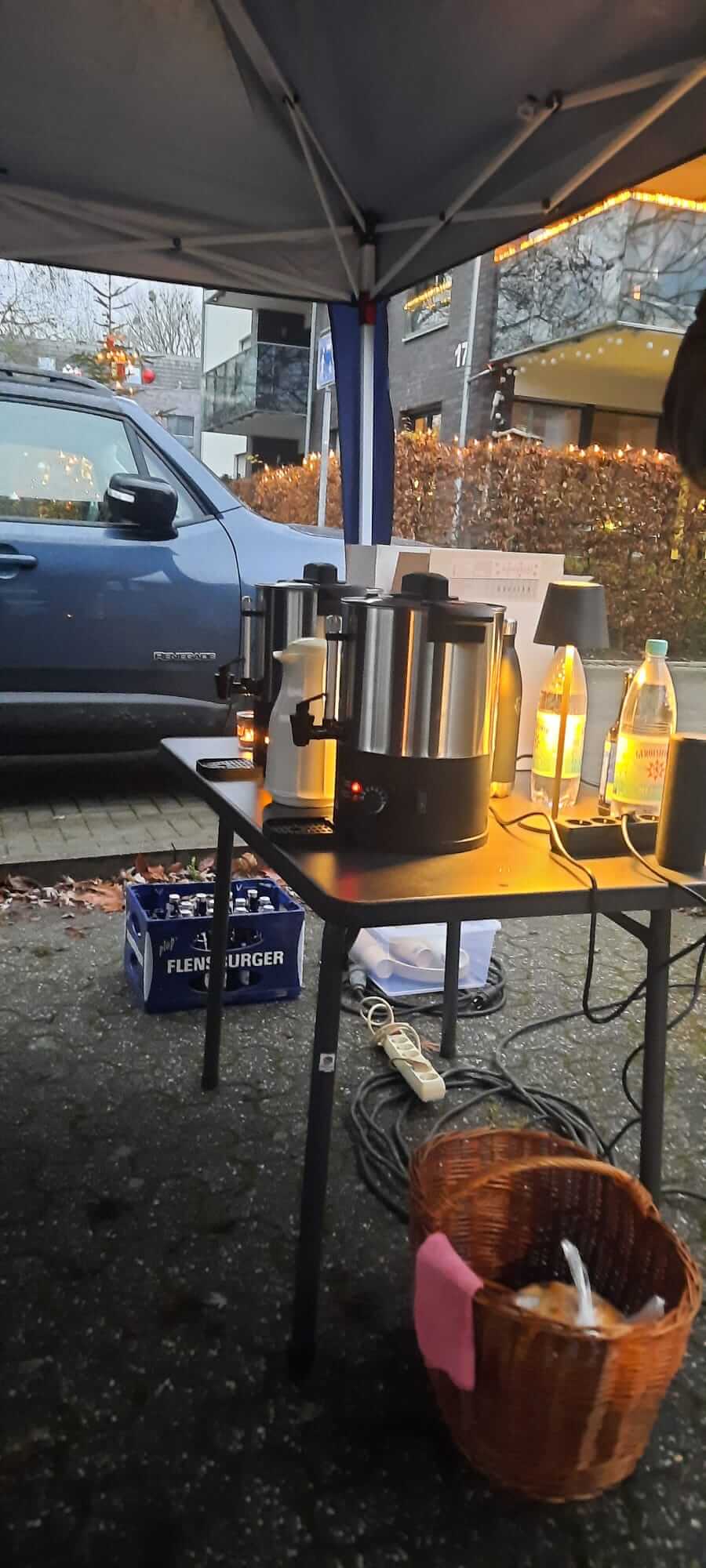Bei leckerem Glühwein, Bier, alkoholfreiem Punsch, Wasser und ein paar Knabbereien, wollten wir an unserem schön geschmückten Weihnachtsbaum nochmal mit allen Nachbarn zusammen das Jahr Revue passieren lassen.