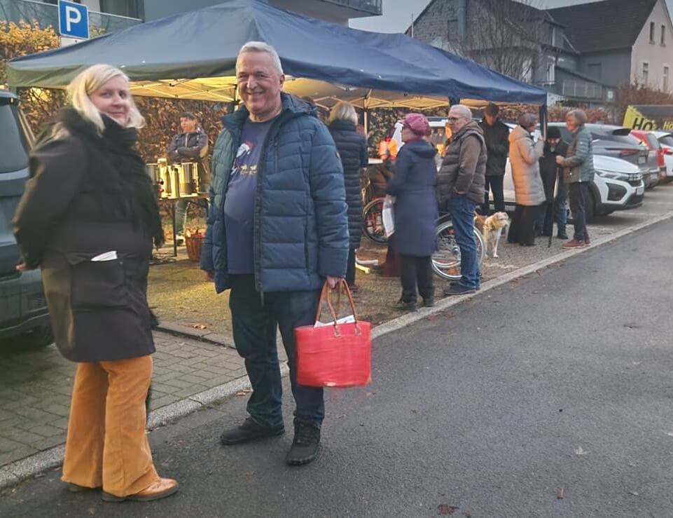 Am 13.12.25 trafen sich die Nachbarn und Freunde am Wupperbogen um 16 Uhr auf dem Parkplatz in der Einfahrt.